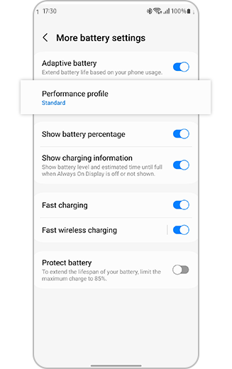 علاوه بر اینها، سری گلکسی S23 سامسونگ دارای ویژگیهای مختلفی در زمینه محافظت از باتری است که طول عمر و عملکرد باتری را بهینه میکند و در عین حال ایمنی را تضمین میکند. این ویژگیها شاملadaptive Battery که با توجه به عملکرد میزان مصرف را تغییر میدهد و به اصطلاح تطبیقی است، حالت صرفهجویی در باتری (Battery saver mode)، مدیریت انرژی، شارژ سریع و همچنین محافظت در برابر گرمای بیش از حد میشود. در میان این ویژگیها، قابلیتی تحت عنوان Battery protectionنیز وجود دارد. این قابلیت بهطور پیشفرض، در سری گلکسی S23 خاموش است، اما وقتی فعال باشد، شارژ باتری را تا 85% محدود میکند تا طول عمر کلی باتری را بهبود بخشد. برای فعال کردن این قابلیت و ارتقای سلامت باتری گوشی خود کافیست اقدامات زیر را انجام دهید :