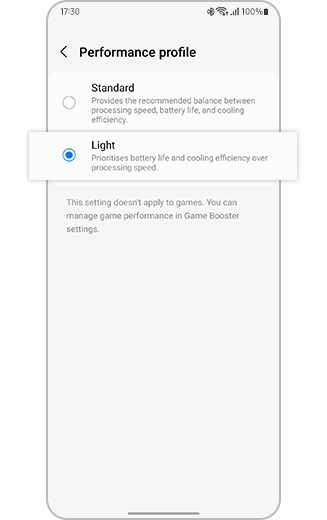 شیوههای متعددی برای حفظ عمر باتری وجود دارد؛ از جمله خاموشکردن گوشی، استفاده از حالت تاریک (Dark mode) و یا فعالکردن حالت هواپیما. اما شرکت سامسونگ یک ویژگی متمایز را نیز به گلکسی افزوده است که باعث صرفهجویی بیشتر در مصرف باتری میشود. این حالت جدید که مبتنی بر عملکرد نور گوشی است Light mode نام دارد و عمر باتری و همچنین بازدهی خنککننده را بر سرعت پردازش اولویت قرار میدهد. بدین ترتیب گلکسی S23 شما انرژی کمتری مصرف میکند بدون اینکه استفاده عمومی را تحت تأثیر قرار دهد.