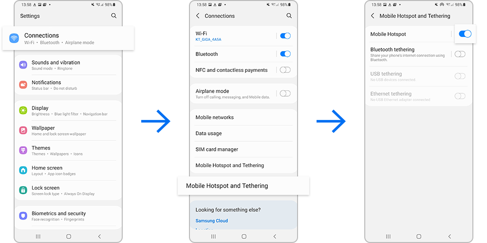زمانی که در مکان مشخصی نیستید و برای لپ‌تاپ یا تبلت خود به اتصال ثابت Wi-Fi نیاز دارید، می‌توانید گلکسی خود را به یک هات اسپات همراه تبدیل کنید. مراحل زیر نحوه فعال کردن، تنظیم رمز عبور و استفاده از سایر گزینه‌های پیشرفته را نشان می‌دهد. قدم به قدم پیش بروید و از داده همراه خود برای دسترسی به اینترنت و اشتراک‌گذاری آن استفاده کنید. به یاد داشته باشید که چندین دستگاه می‌توانند به هات اسپات شما متصل شوند؛ بنابراین، حتما مصرف داده خود را کنترل کنید تا از حد مجاز فراتر نرود.