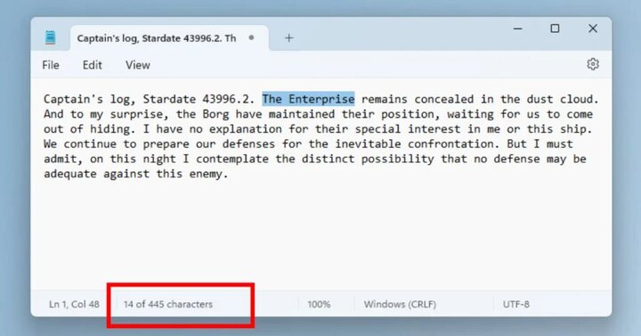 به گزارش شبکه خبری ICTPRESS به نقل از گیزموچاینا، این ویژگی هرچند ساده به نظر می رسد اما از زمان عرضه در برنامه یادشده وجود نداشت. قابلیت شمارش کاراکتر «نوت پد» در آخرین نسخه آزمایشی کانال Canary در ویندوز ۱۱ ارائه می شود و به این ترتیب نمایشگر تعداد کاراکترها را به گوشه سمت چپ پایین پنجره «نوت پد» اضافه می کند. این اقدام تقلیدی از ویژگی های ابزار اصلاح کننده متن مانند مایکروسافت ورد است و روشی مناسب برای رصد طول متن به حساب می آید.