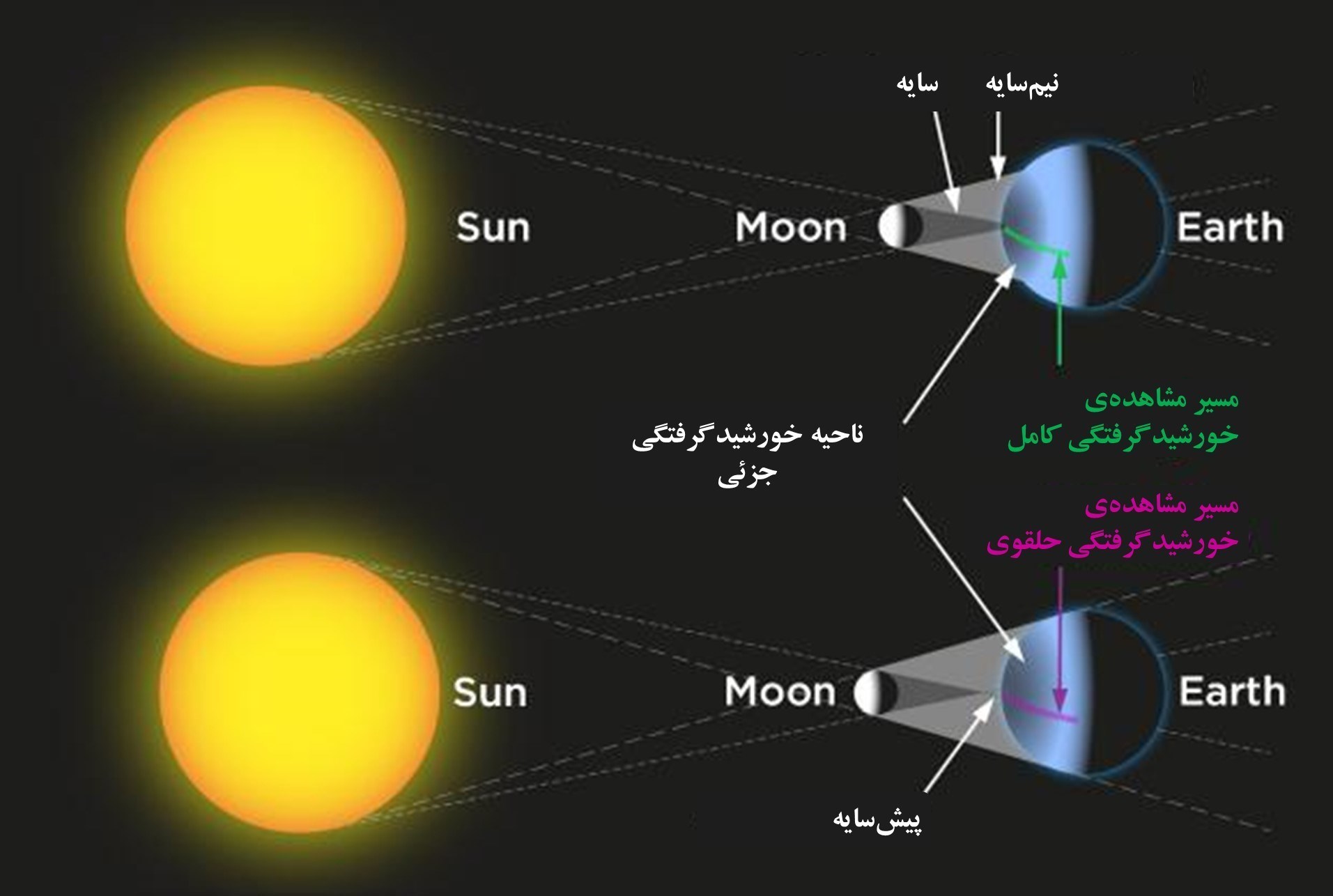 سپس اگر میخواهید خورشیدگرفتگی کامل را از ایران رصد کنید، باید خیلی بیشتر، تا ۳۰ اسفند ۱۴۱۲ (۲۰ مارس ۲۰۳۴) صبر کنید. این خورشیدگرفتگی نادر که همزمان با اعتدال بهاری و آغاز سال نو خورشیدی رخ میدهد، یکی از شگفتانگیزترین رویدادهای نجومی و فرهنگی پیشرو محسوب میشود.