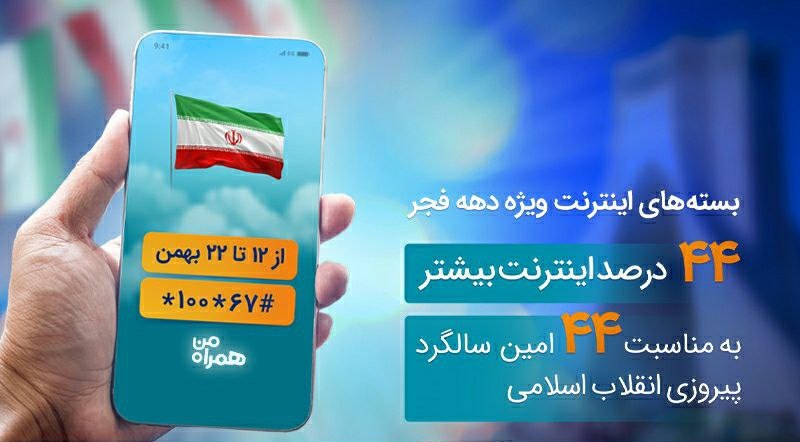 ICTPRESS - ایرانسل به مناسبت چهل و چهارمین سالروز پیروزی شکوهمند انقلاب اسلامی، هدایای ویژهای، شامل بسته اینترنت هدیه ۴۴ گیگابایتی و مکالمه هدیه ایرانسلی را برای مشترکان خود در نظر گرفته است.