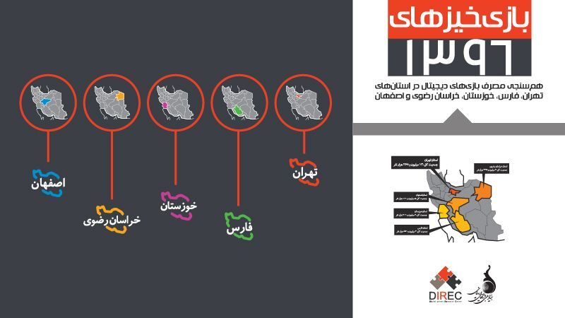 ICTPRESS -معاونت پژوهش بنیاد ملی بازیهای رایانهای، با ارائه جدیدترین آمار و پژوهشهای خود میزان مصرف بازیهای دیجیتال در استانهای تهران، فارس، خوزستان، خراسان رضوی و اصفهان را بررسی کرده و در قالب گزارشی با نام «بازیخیزهای ۱۳۹۶» منتشر کرده است.