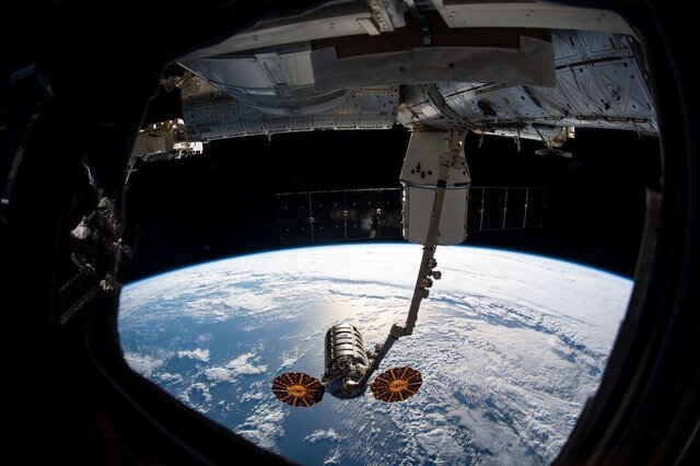 ICTPRESS - فضانوردان ایستگاه فضایی بینالمللی تصویری ثبت کردند که فضاپیمای "دراگون"(Dragon) و "سیگنوس"(Cygnus) را در کنار هم نشان میدهد.