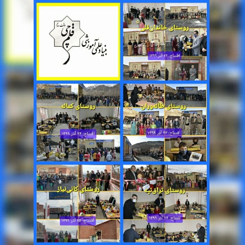 ICTPRESS - تعداد ۵ مدرسه روستایی اهدایی بنیاد قلمچی به دانشآموزان ۵ روستای استان کردستان، طی روزهای یکشنبه تا سهشنبه ۲۳ تا ۲۵ آذر ۹۹ افتتاح و بهره برداری شد.